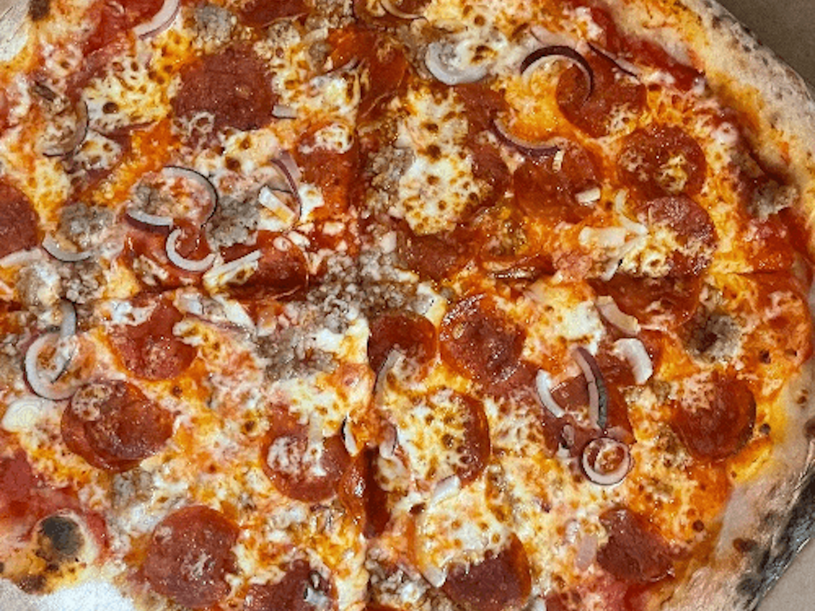 Brooklin is in the house !!!! Shredded italian cheese sausages Roasted peppers and red onion !